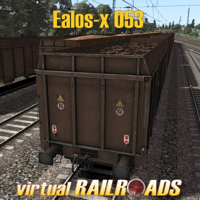 The vehicle package contains the four axle open freight wagon Ealos in two versions